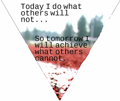 I choose a quote by football player Jerry Rice, which I have used for years as inspiration, especially for difficult sports training. The quote is "Today I do what others will not, so that tomorrow I will achieve what others cannot." The idea that captures my attention is that there is worth to the hardwork I am doing today, even though it is difficult, and would be so much easier to sit comfortably at home. However, this quote reminds me that even though it is more difficult and less apealing to work hard in the moment, it all pays off in the end. The image that I chose to represent my quote on the class's icosahedron is of an empty track. An empty track is an invitation to run and to push yourself, even when others choose not to be there. To me, this represents the idea of working and training when my peers choose not to. This image may be of sports, but the idea applies to all areas of life. When I started this project, I knew that I wanted to have an empty track represent my quote, but it took a great deal of peer critique to become beautiful work.